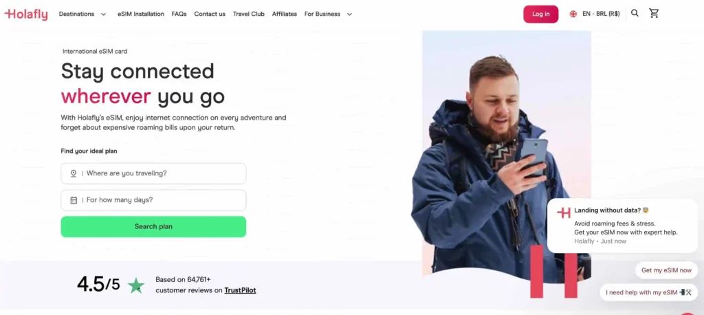 Não existe nada mais libertador que viajar já conectado, pra isso o eSIM da Holafly funciona em 170+ países com dados ilimitados.